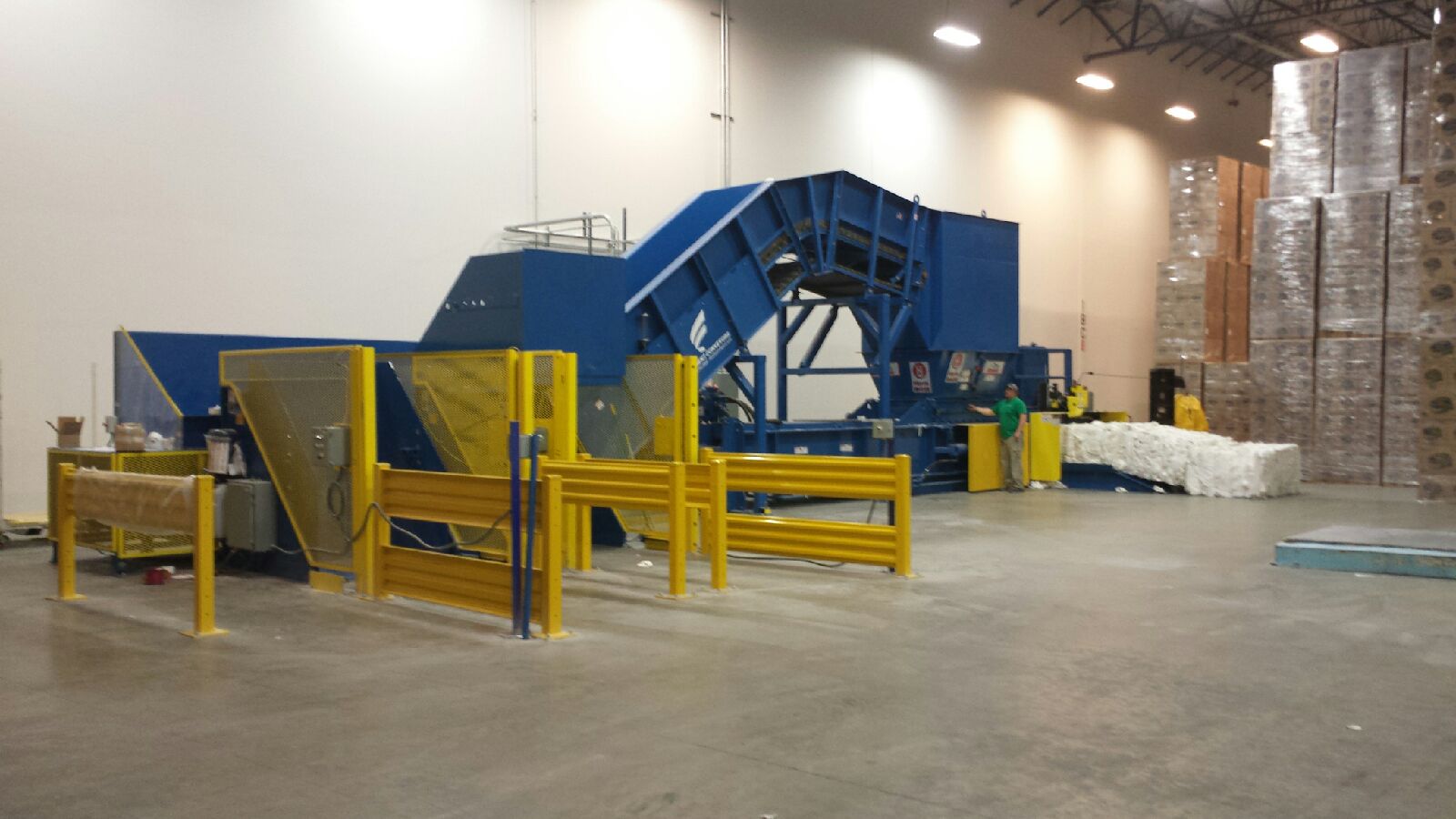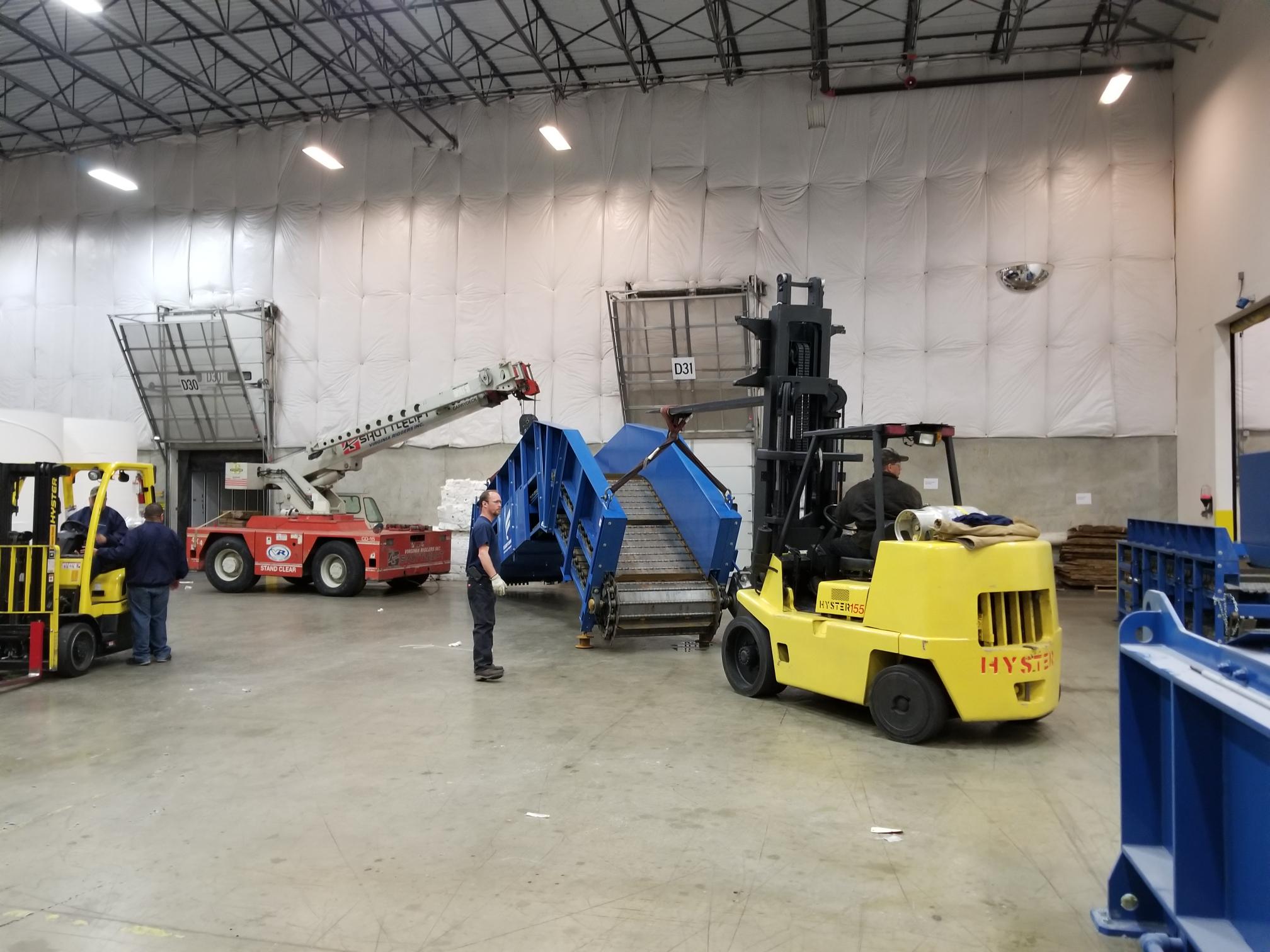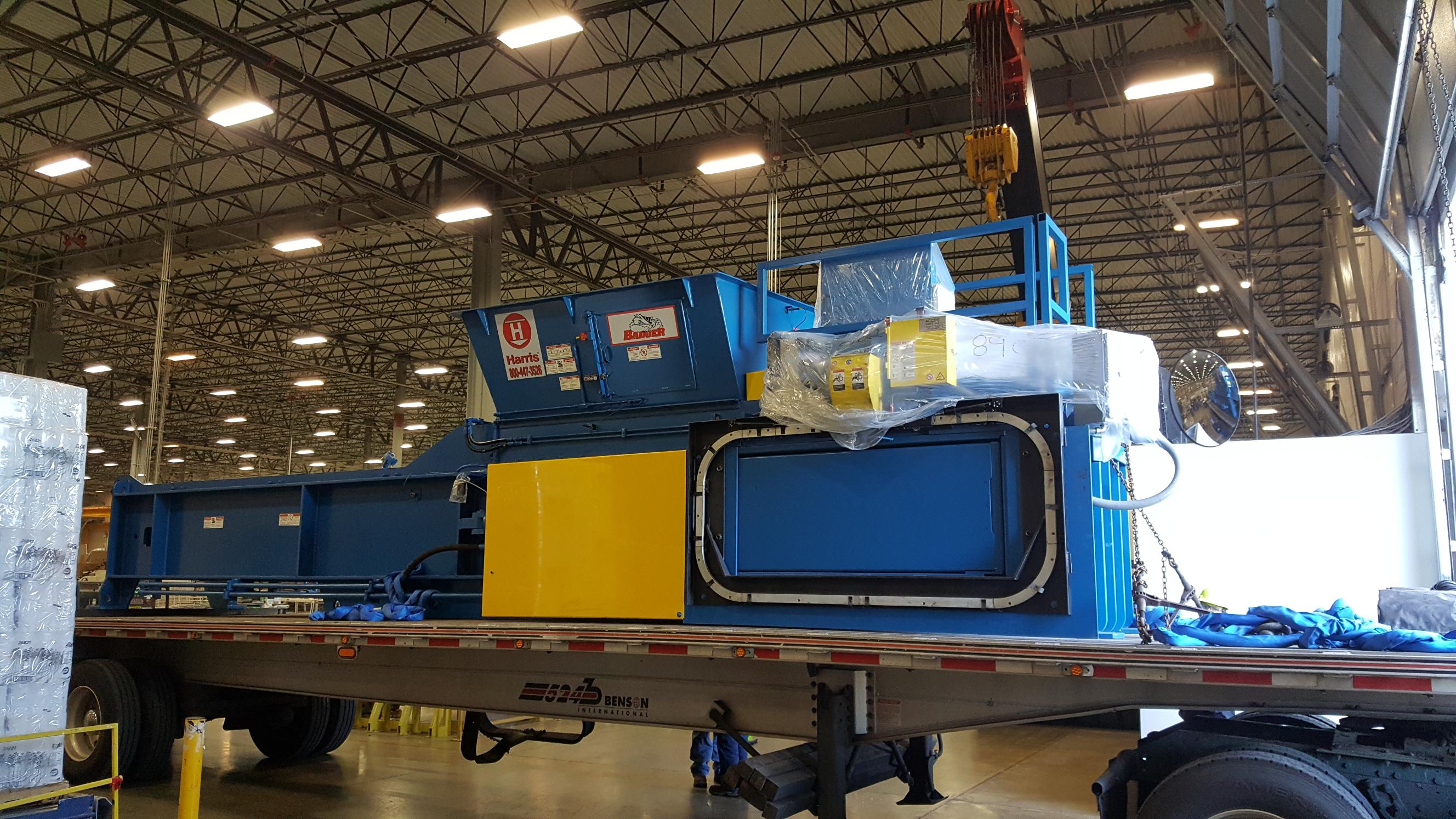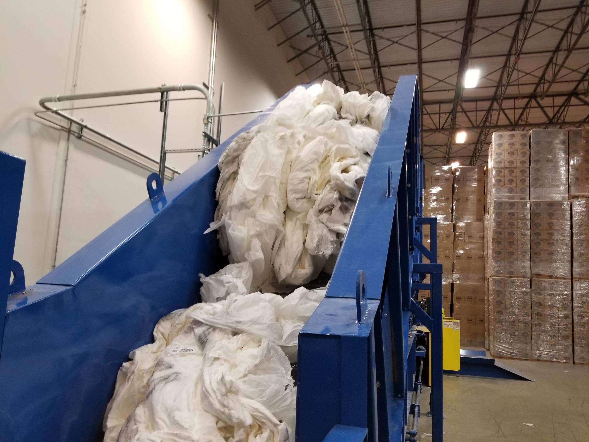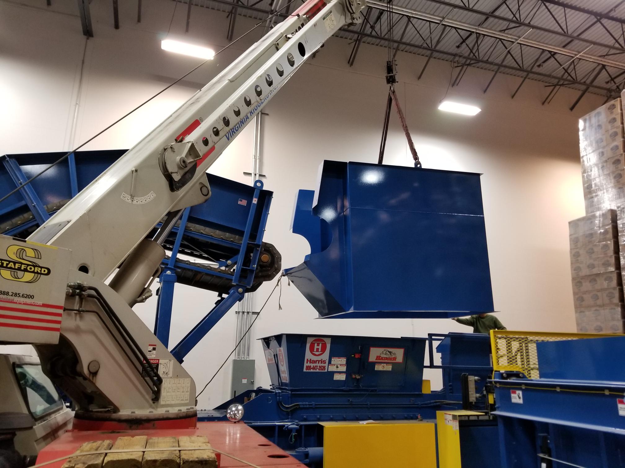 Hinged Steel Belt Infeed Conveyor Feeding A Harris Two Ram Baler