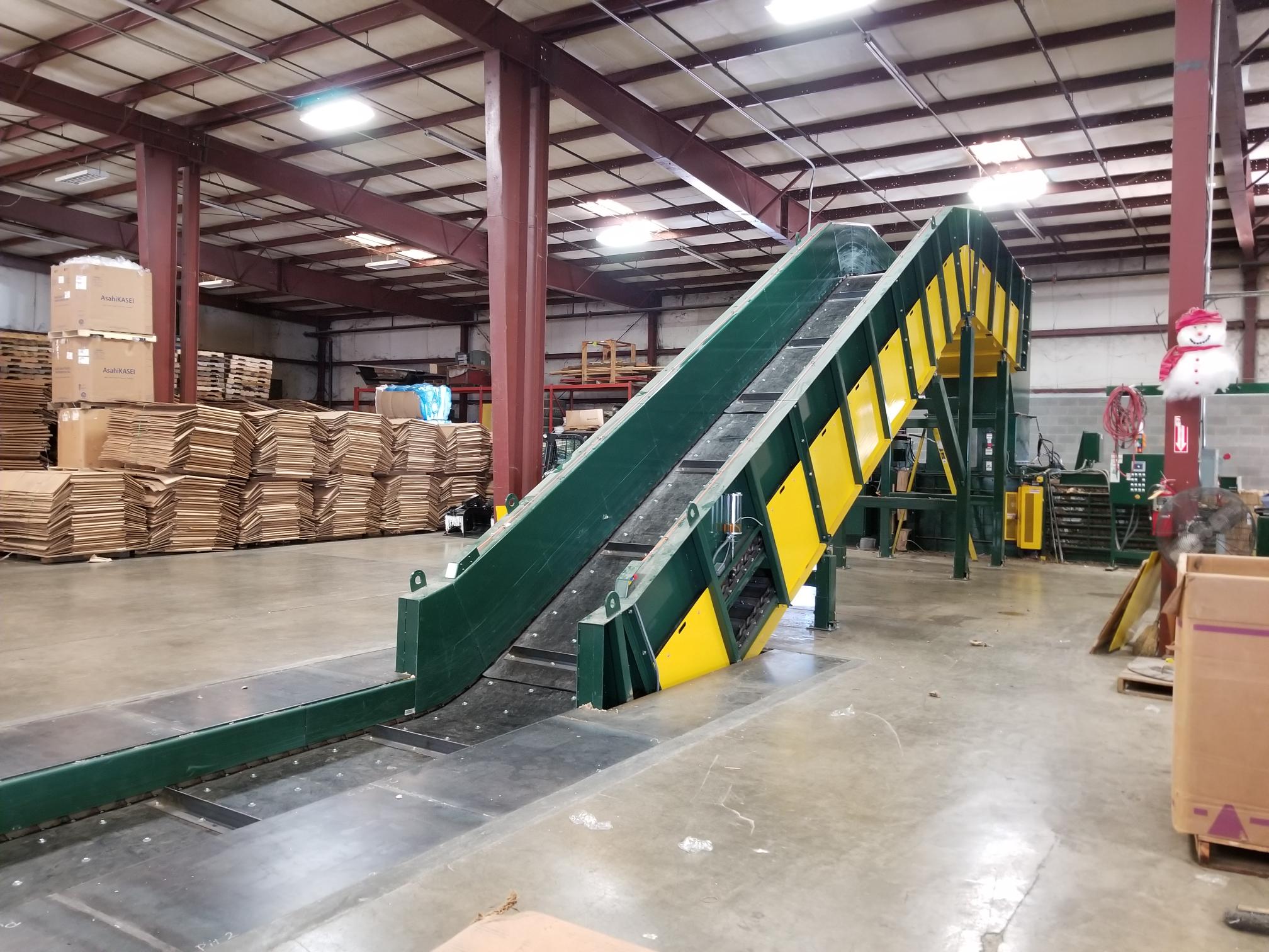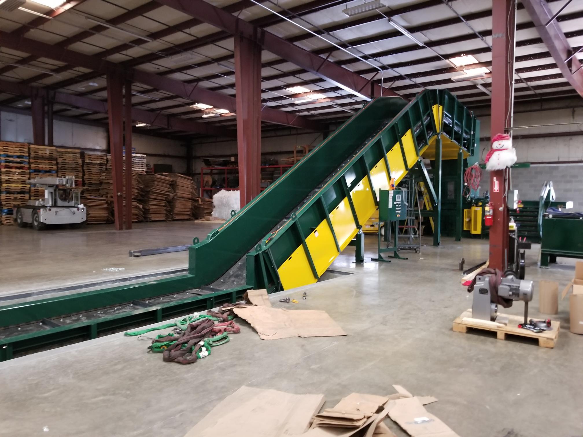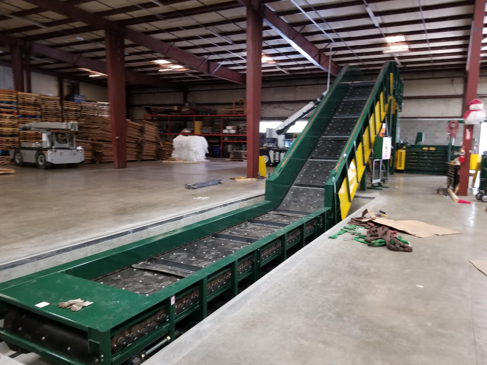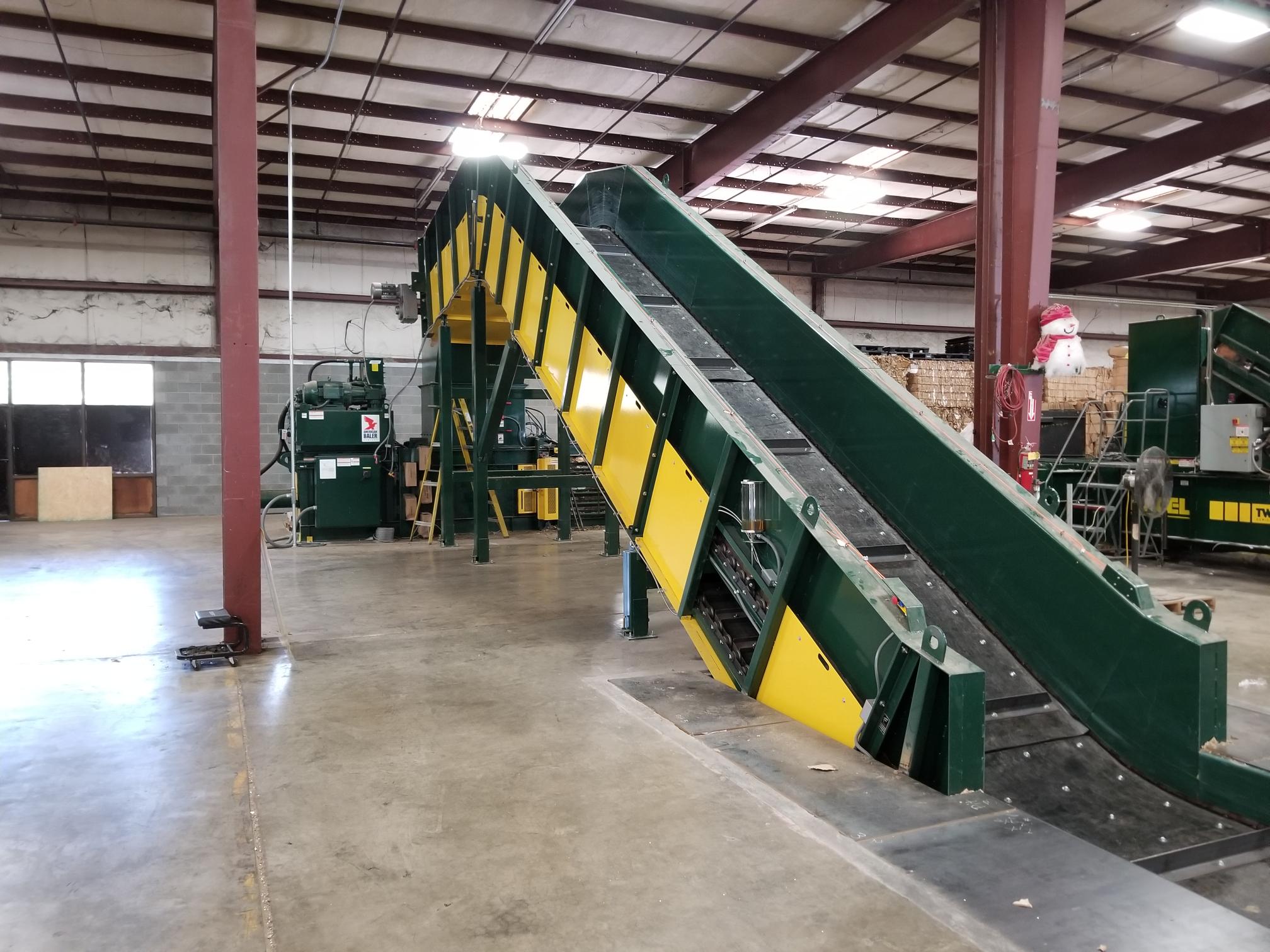 Rubber Combo Baler Infeed Conveyor Feeding an American Auto Tie Horizontal Baler In Winston Salem, NC