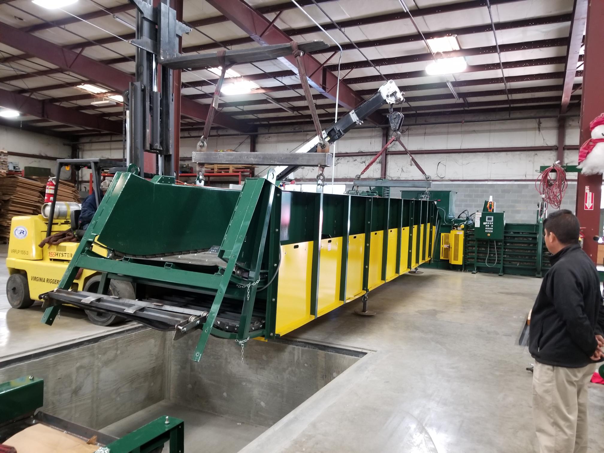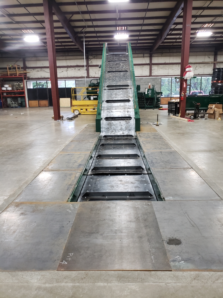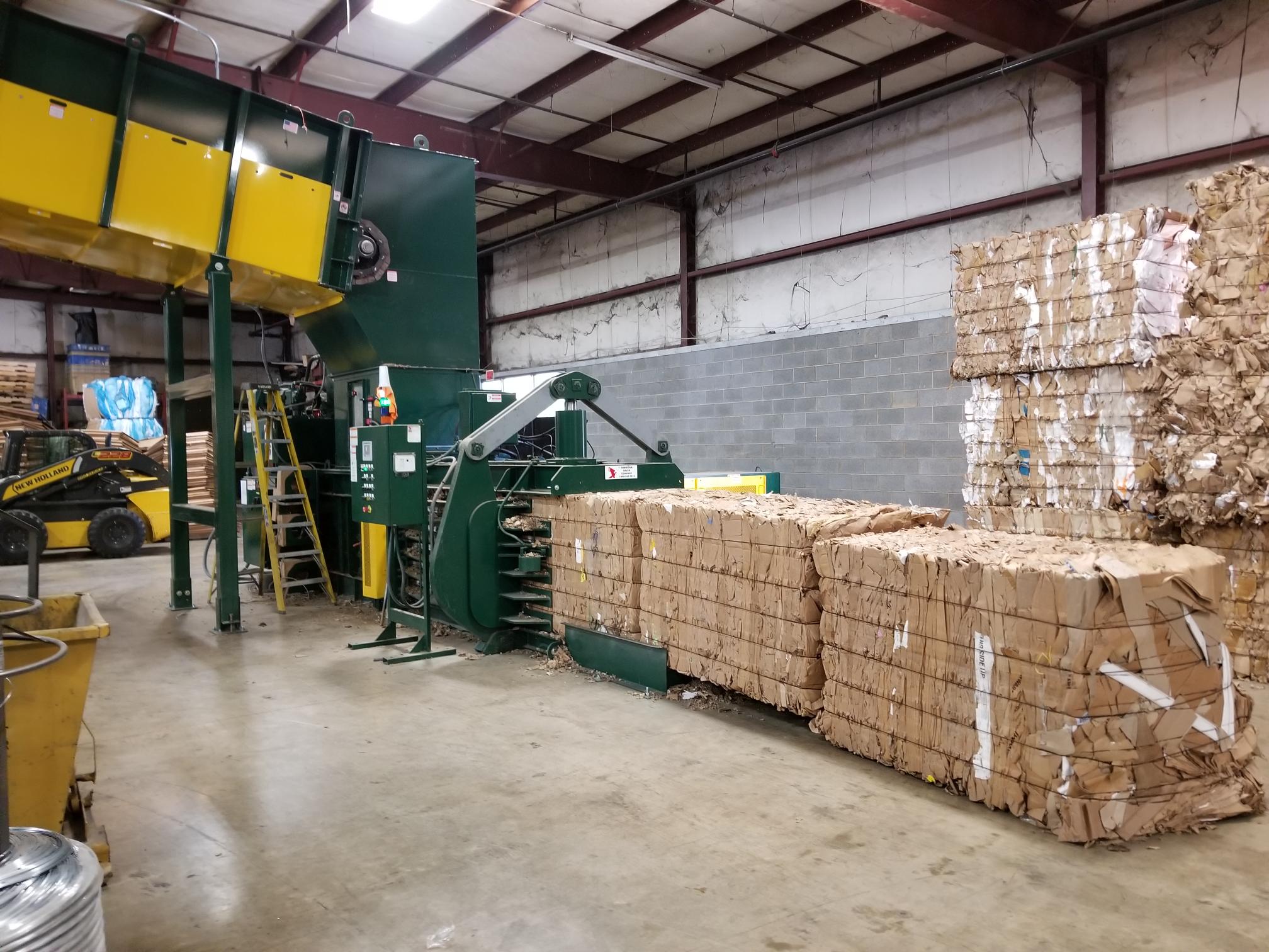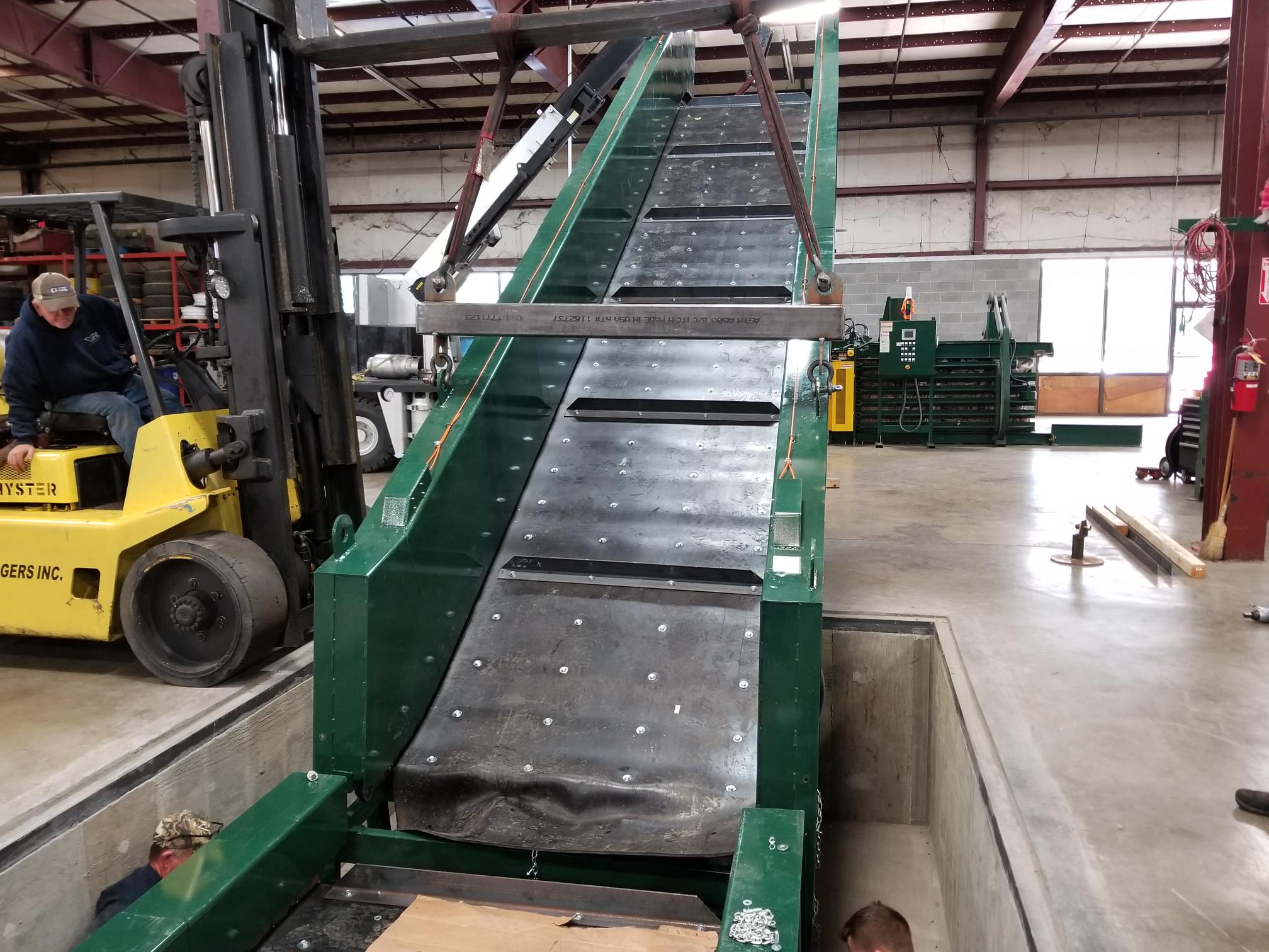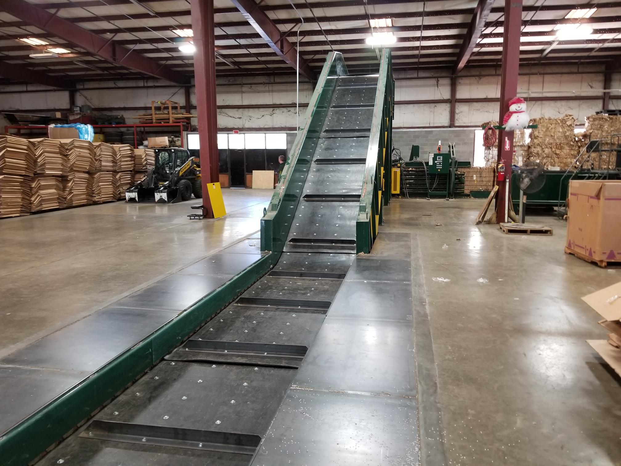 Rubber Combo Baler Infeed Conveyor Feeding an American Auto Tie Horizontal Baler In Winston Salem, NC