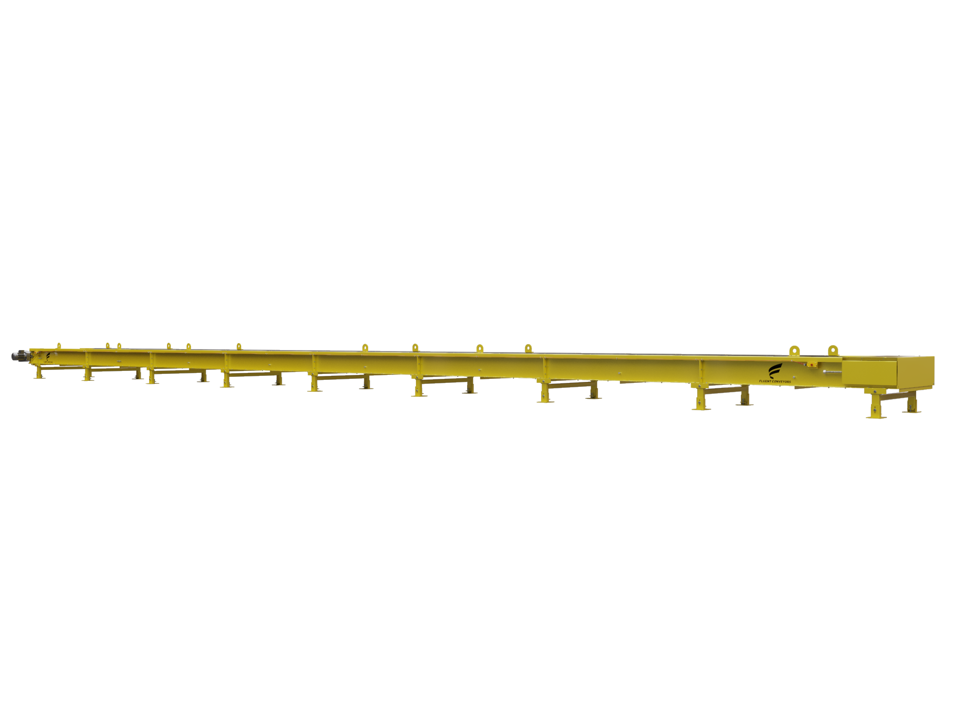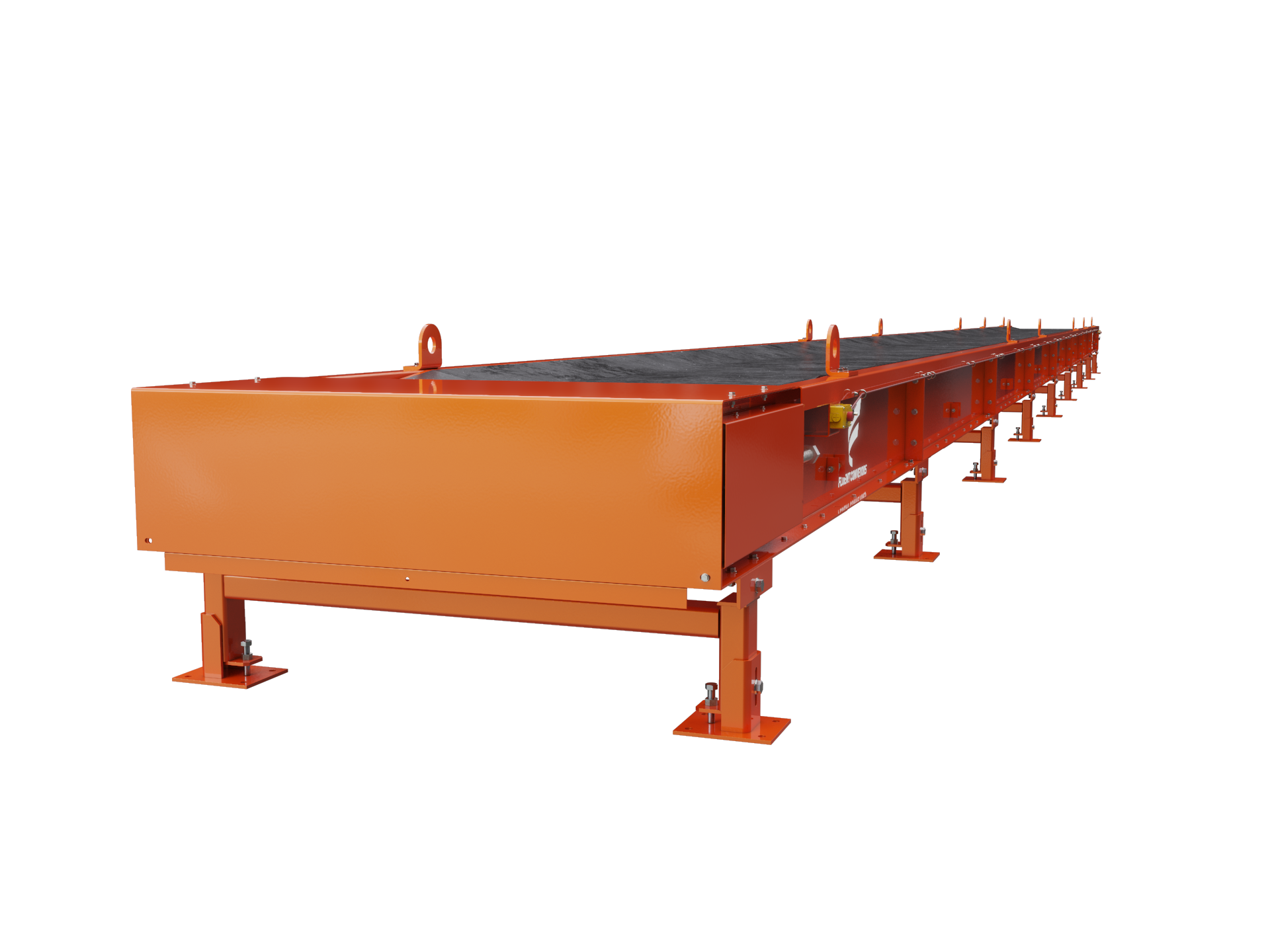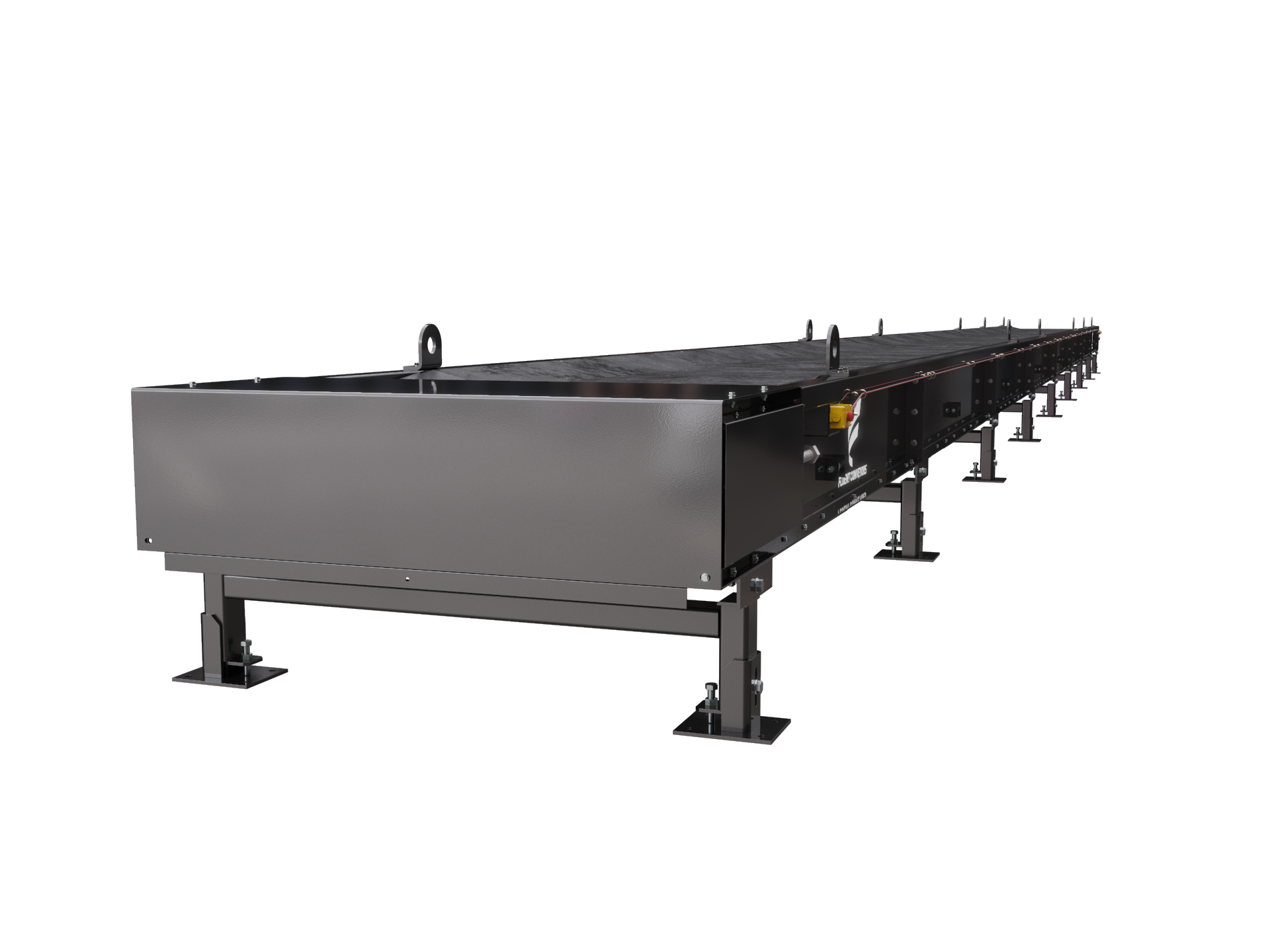 This model delivers exactly what the market requires for high volume rigid and abrasive material as well as high-temperature and other extreme applications. All designs are made to order and customizable. This model requires 3/8-inch-thick or 1⁄2 -inch-thick pit plates and material is typically fed onto the conveyor with a skid steer, bobcat, front-end loader etc. Only the best machinery, transforming your systems and business.