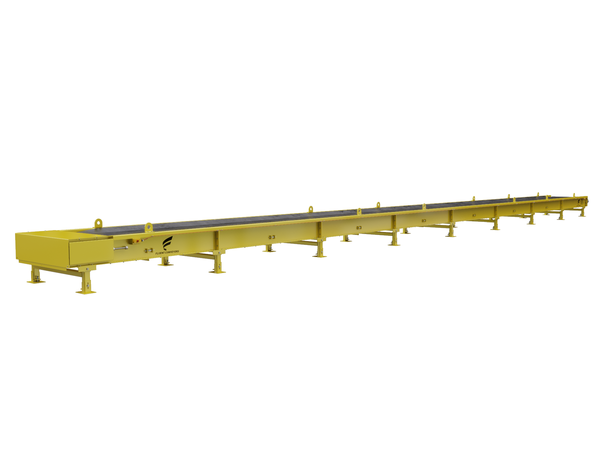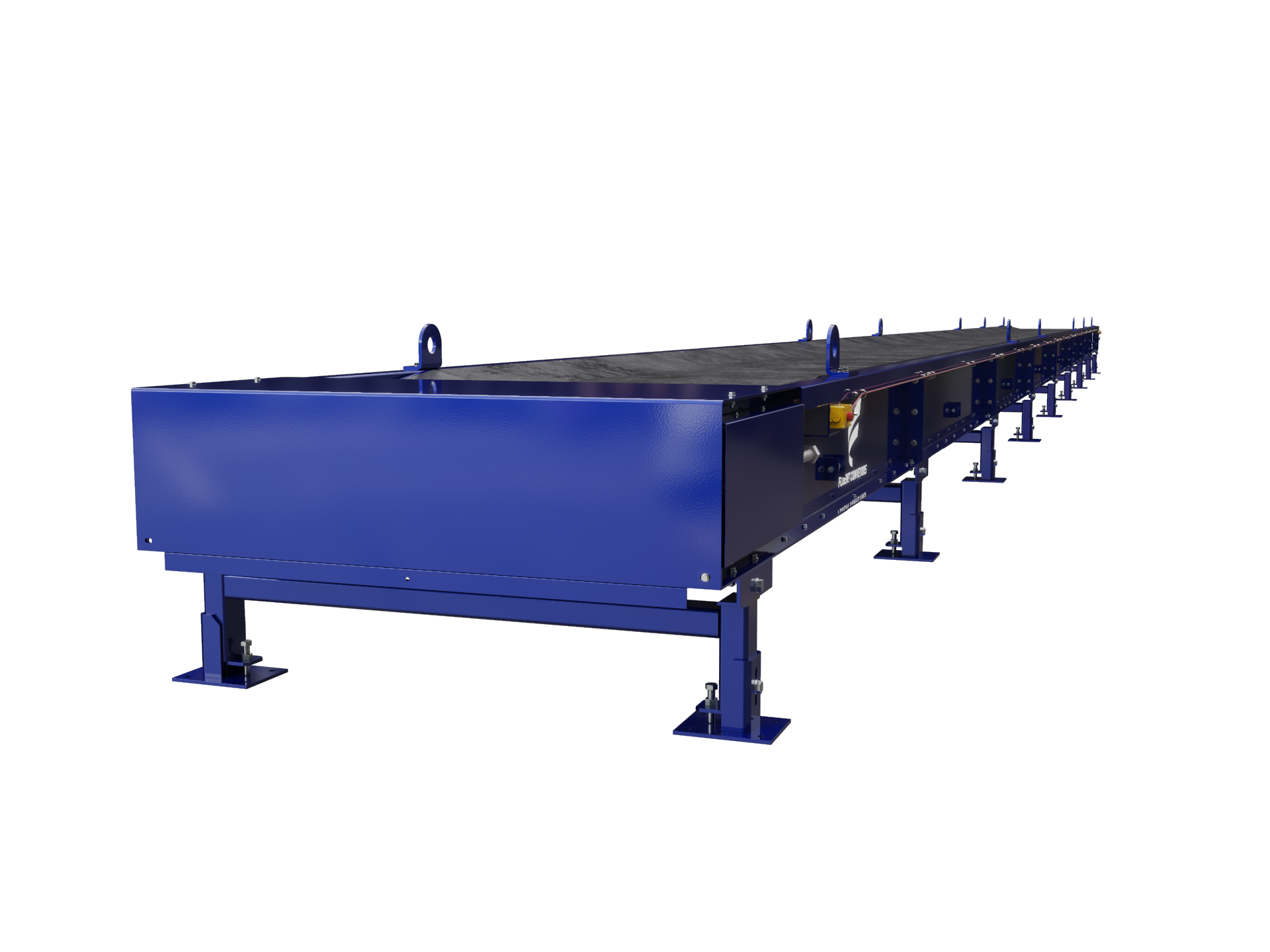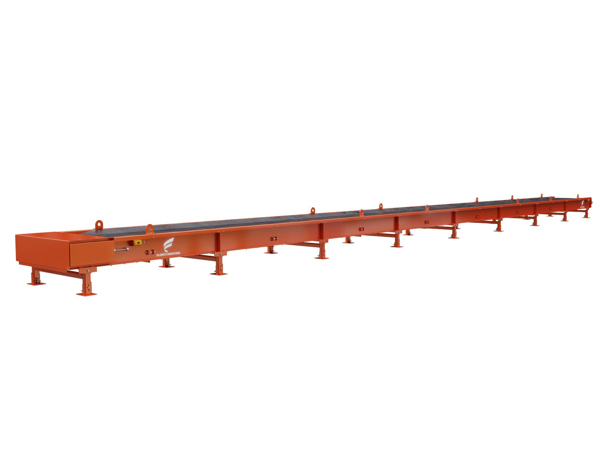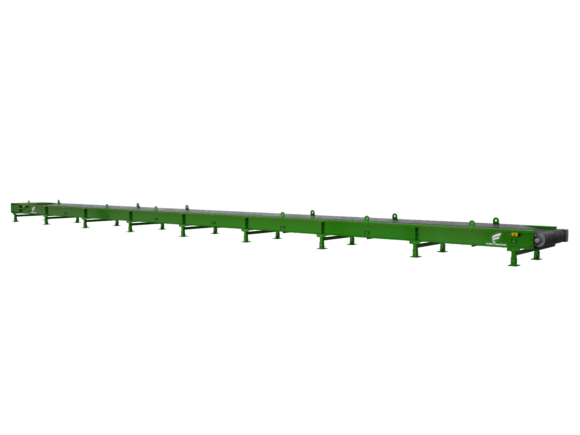 This model delivers exactly what the market requires for high volume rigid and abrasive material as well as high-temperature and other extreme applications. All designs are made to order and customizable. This model requires 3/8-inch-thick or 1⁄2 -inch-thick pit plates and material is typically fed onto the conveyor with a skid steer, bobcat, front-end loader etc. Only the best machinery, transforming your systems and business.