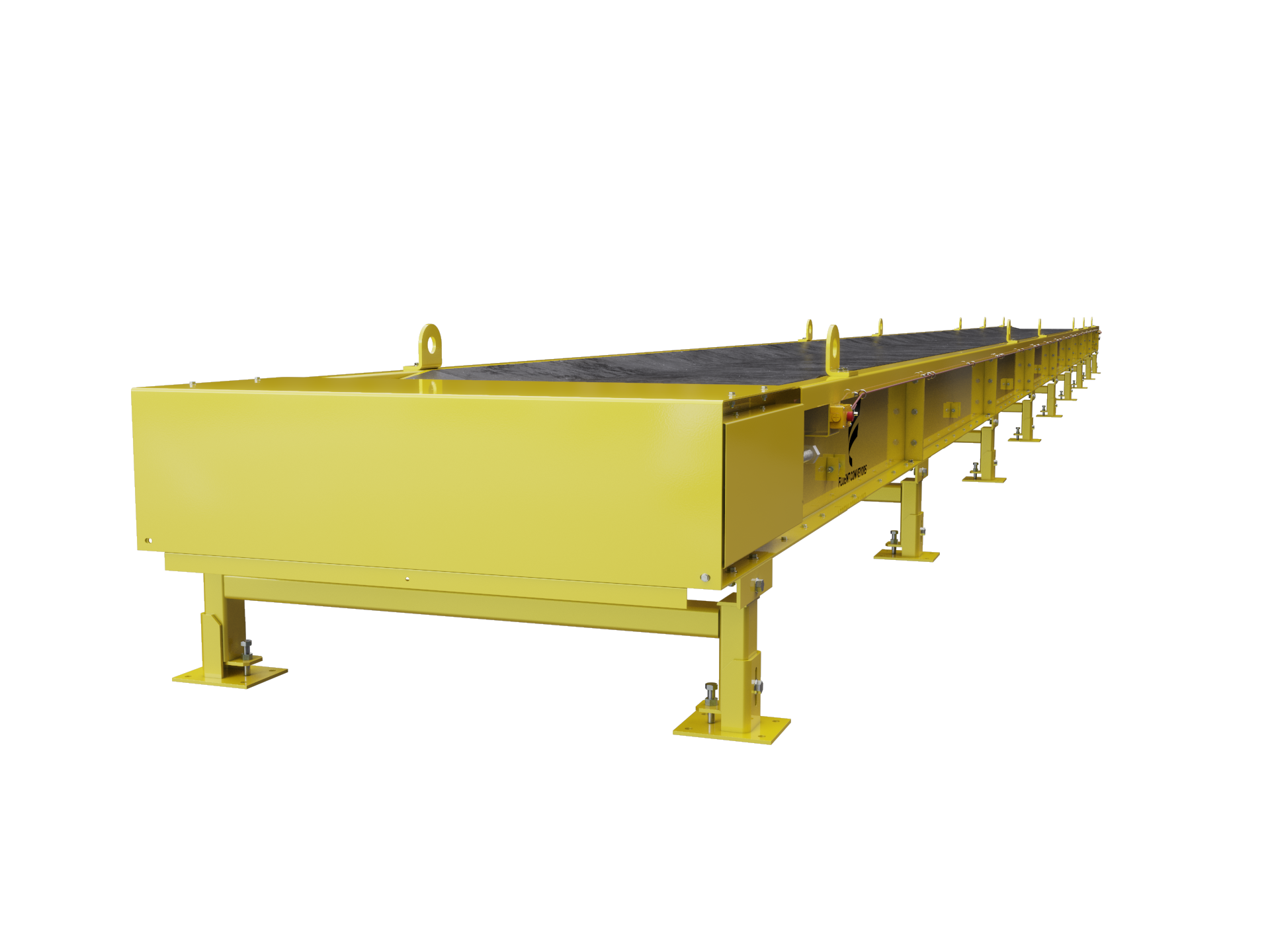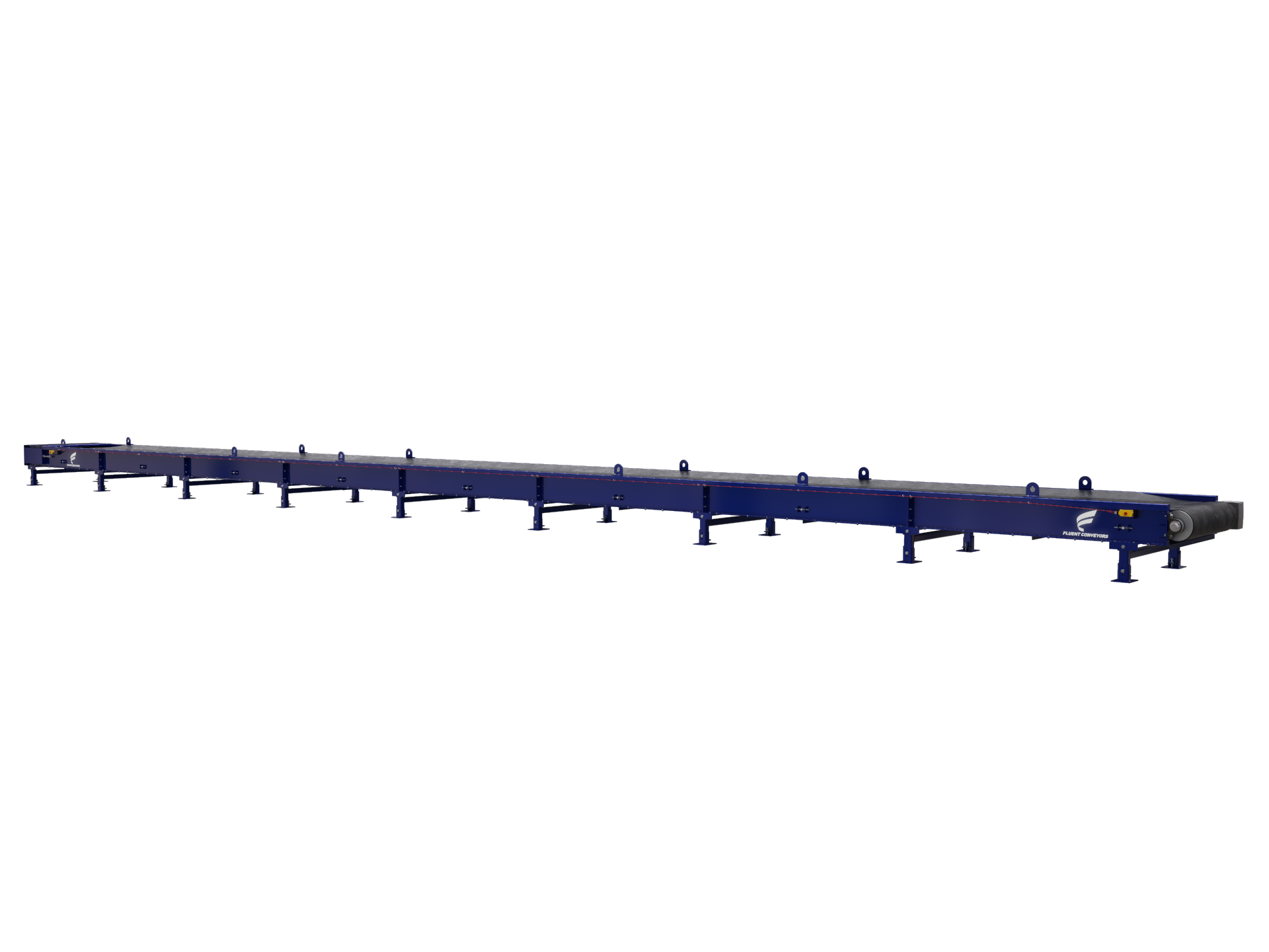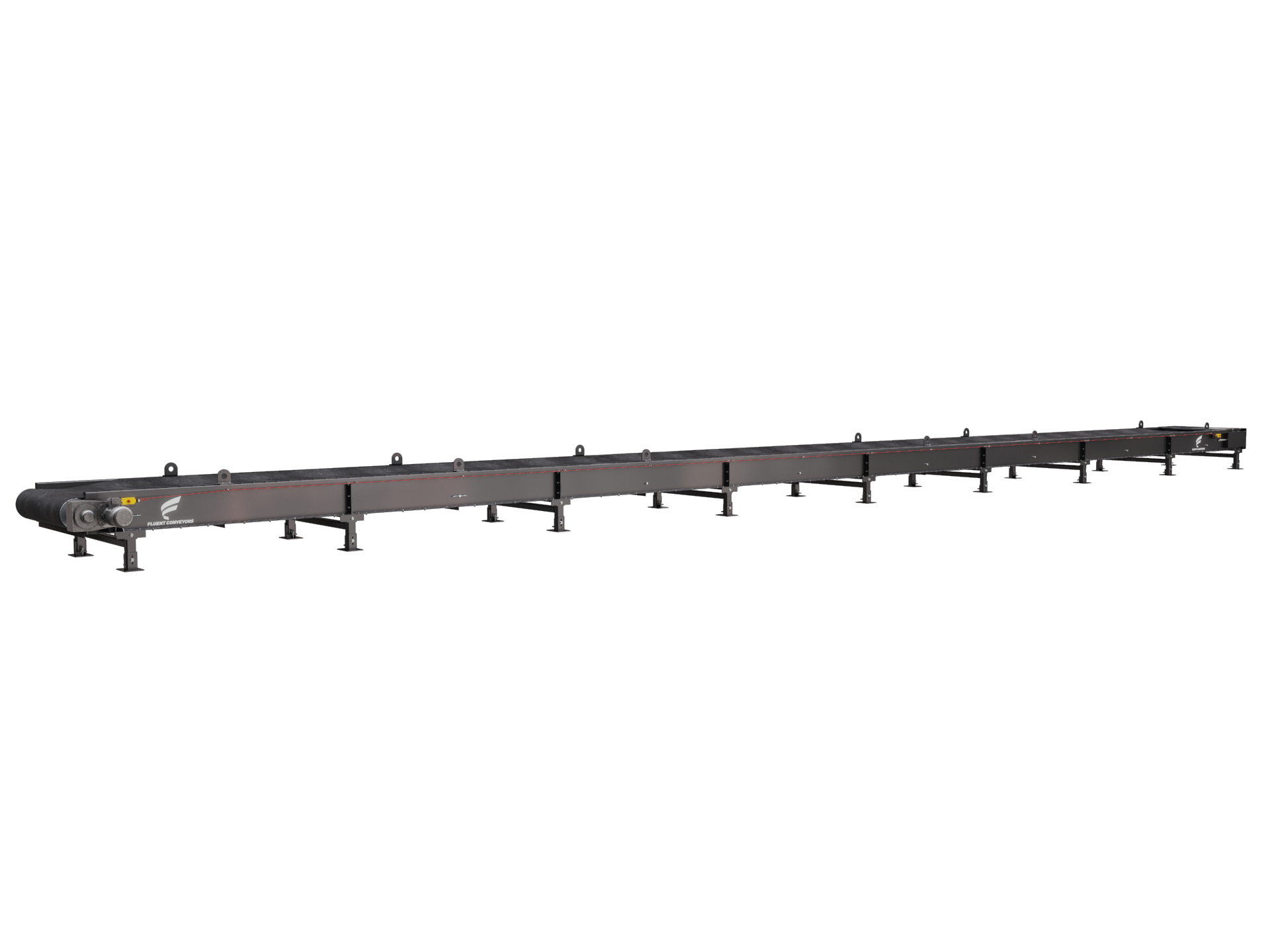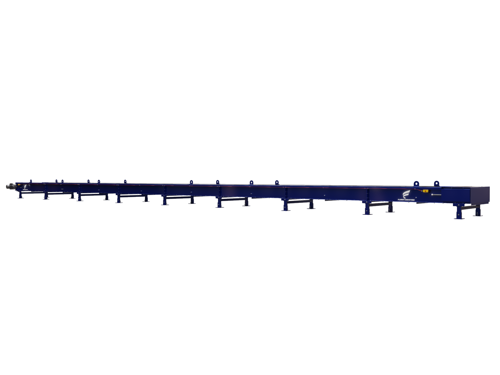 Fluent Conveyors slider bed conveyors are offered with most of the options you will find throughout the industry. We offer both load depths from several feet deep in pits to no side walls for sorting. Fluent has slider bed frame configurations designed for carrying broken glass and troughed for bulk material handling.