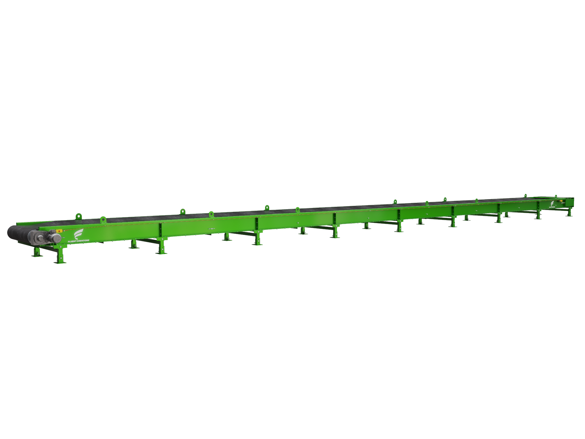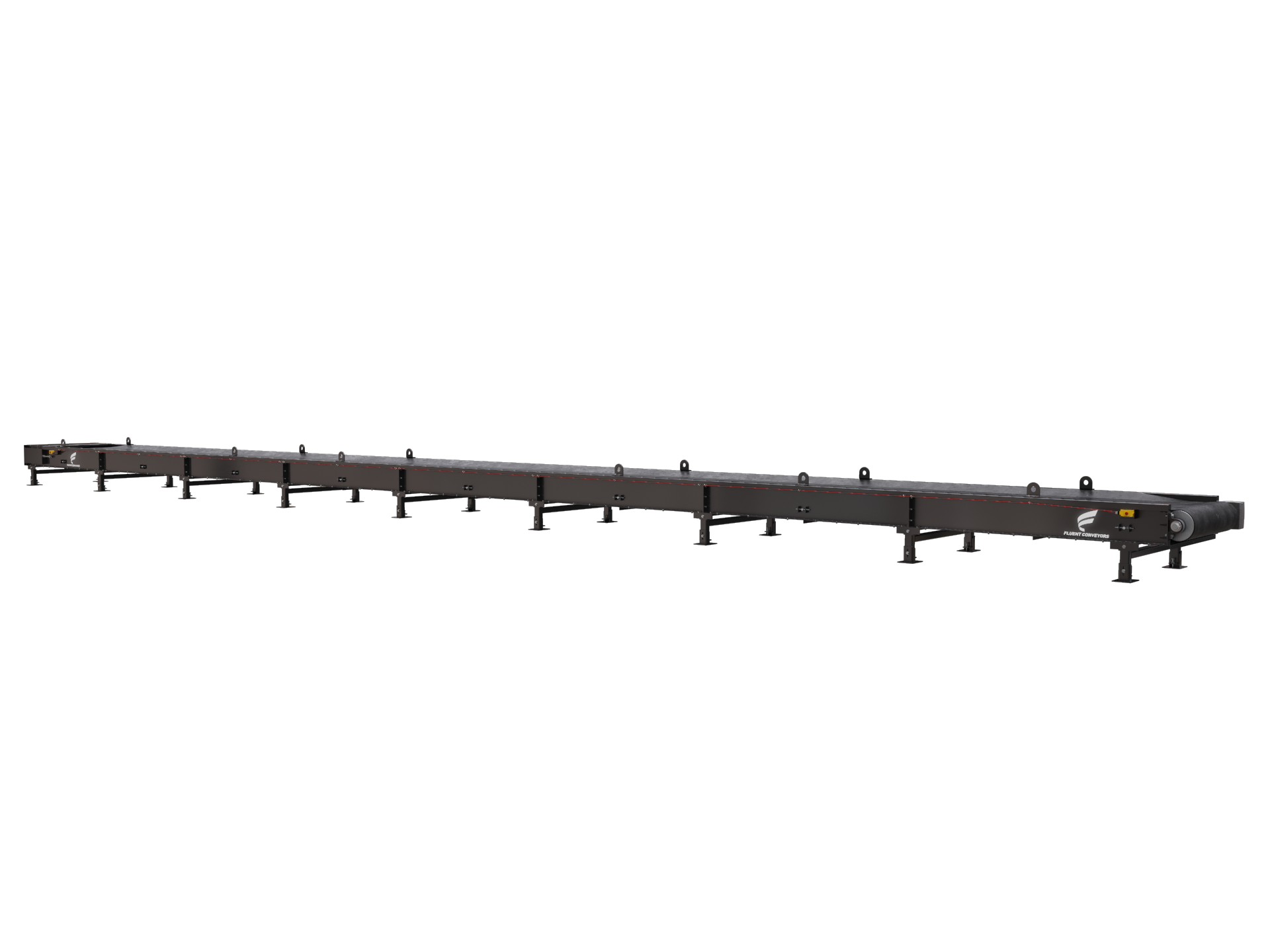 Fluent Conveyor’s Above Ground Transfer Roller Chain Belt Conveyors are found in robust applications and best utilized to transfer bulk materials spanning long distances and different elevations. This model delivers exactly what the market requires for high volume rigid and abrasive material as well as high-temperature and other extreme applications.